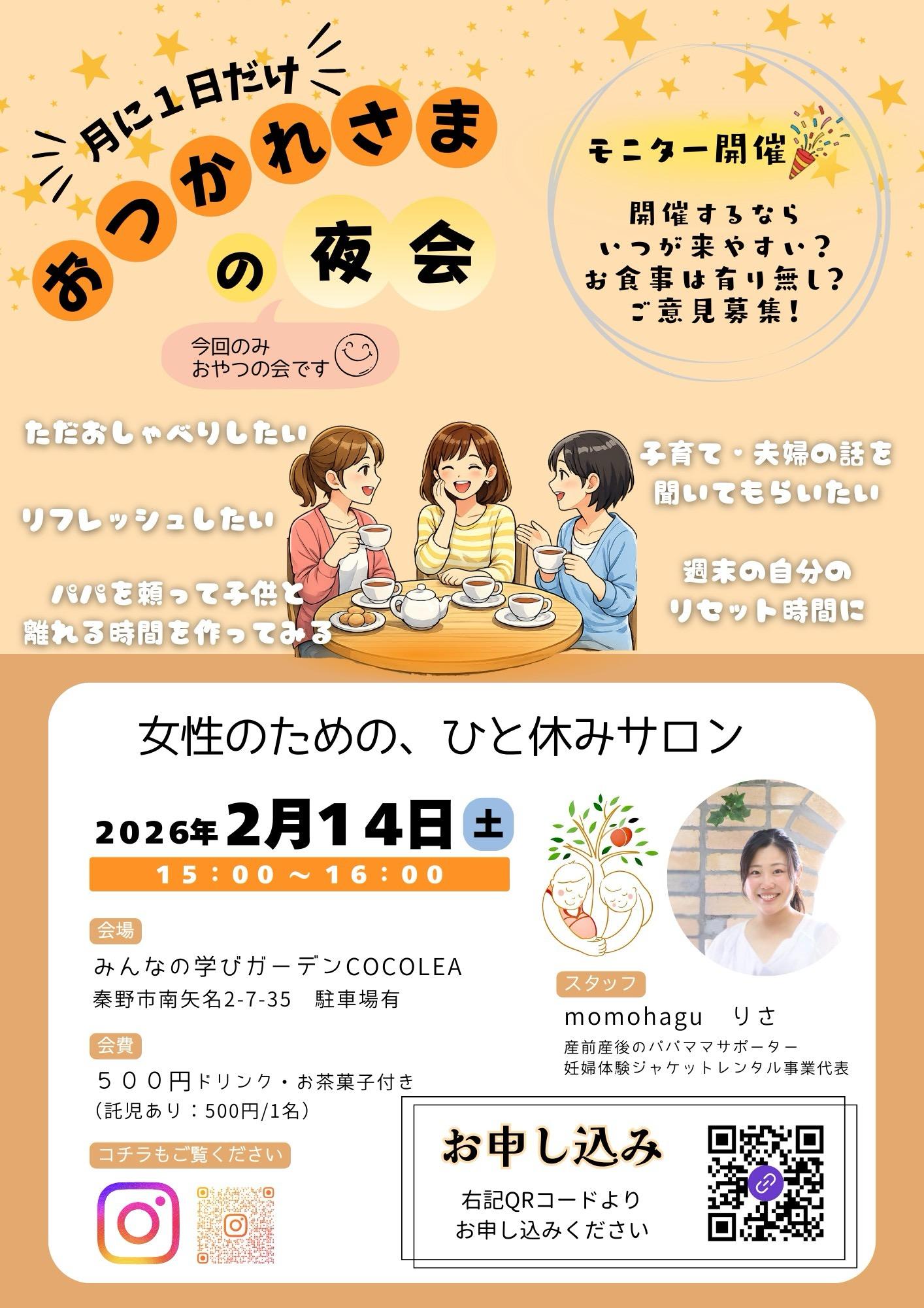 ※よもぎ蒸しをご利用の方は、参加費無料
